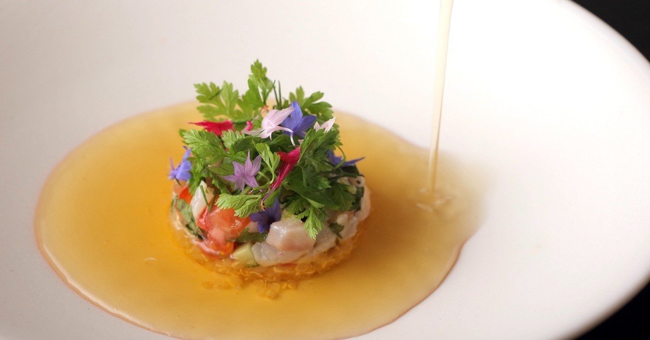 おかひじきや枝豆もアクセントになり、あらゆる食感とあらゆる旨味がお互いを引き立て合うさすがの一皿だ。